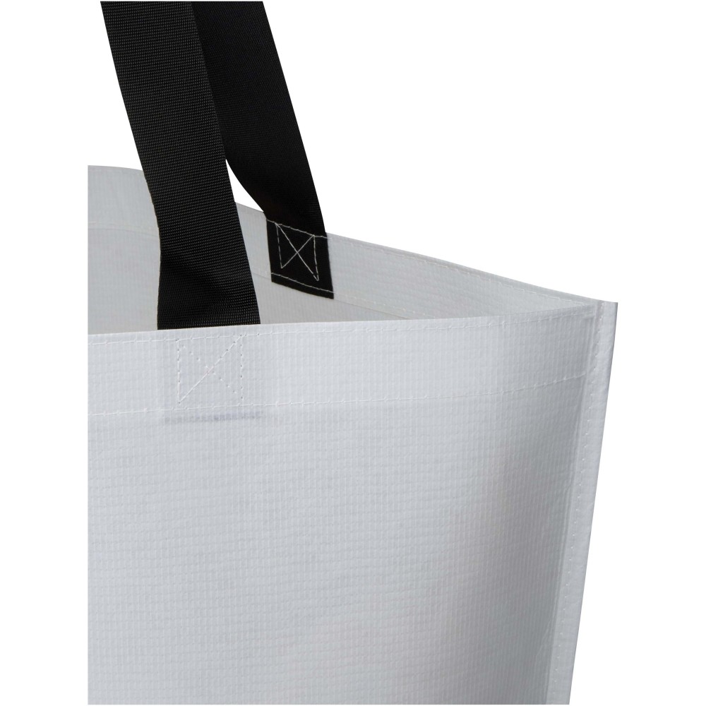 A 150 g/m2 súlyú, GRS tanúsítvánnyal rendelkező újrahasznosított RPET alapanyagból készült Duo bevásárlótáska duplán laminált alsó résszel rendelkezik a fokozott tartósság és vízállóság érdekében. A táska tágas, nyitott főrekesszel, megerősített hordozófülekkel és extra kapacitást biztosító széles talprésszel készült. A 30 literes űrtartalmú modell teherbírása 15 kg, így megbízható és praktikus választás élelmiszer-vásárláshoz, szabadidős tevékenységekhez vagy rövidebb utazásokhoz.