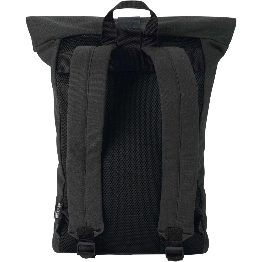 A Recanvas roll-top hátizsák GRS tanúsítvánnyal rendelkező, újrahasznosított és vízlepergető vászonból készült, színben harmonizáló RPET béléssel. A 16 literes űrtartalmú táska egy párnázott rekesszel rendelkezik a legfeljebb 14"-os laptopok számára, emellett egy cipzáras elülső zsebbel, légáteresztő hálós hátrésszel és a kényelmet szolgáló állítható vállpántokkal van felszerelve. A bővíthető roll-top záródás lehetővé teszi a tárolókapacitás növelését igény szerint, ami ideálissá teszi ingázáshoz, utazáshoz vagy szabadtéri kalandokhoz.