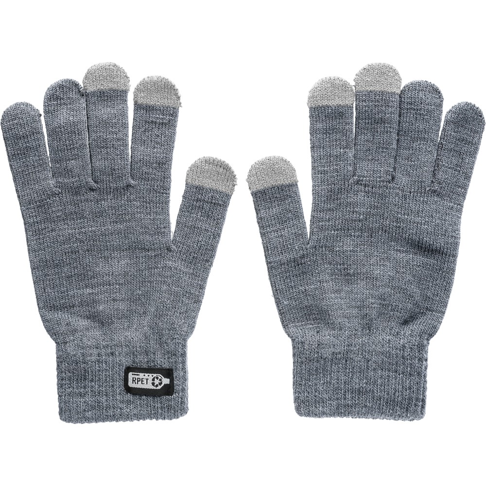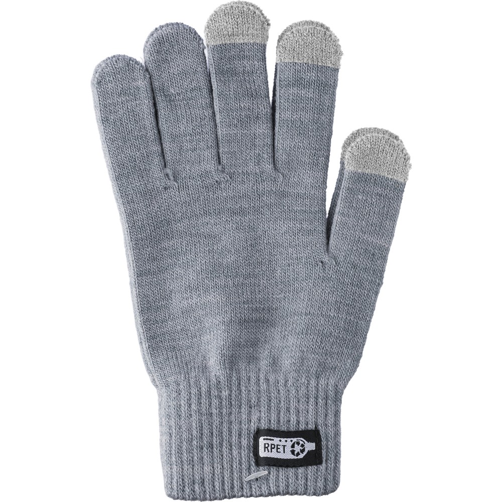 rPET érintőképernyős kesztyű három ujján vezetőképes bevonattal a képernyőhasználathoz. Kívül rPET címkével.