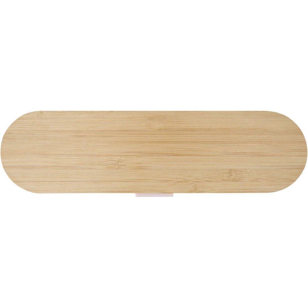 Emblémázott Runa evőeszközkészlet bambusz fedővel, rózsaszín (műanyag konyhai felszerelés)