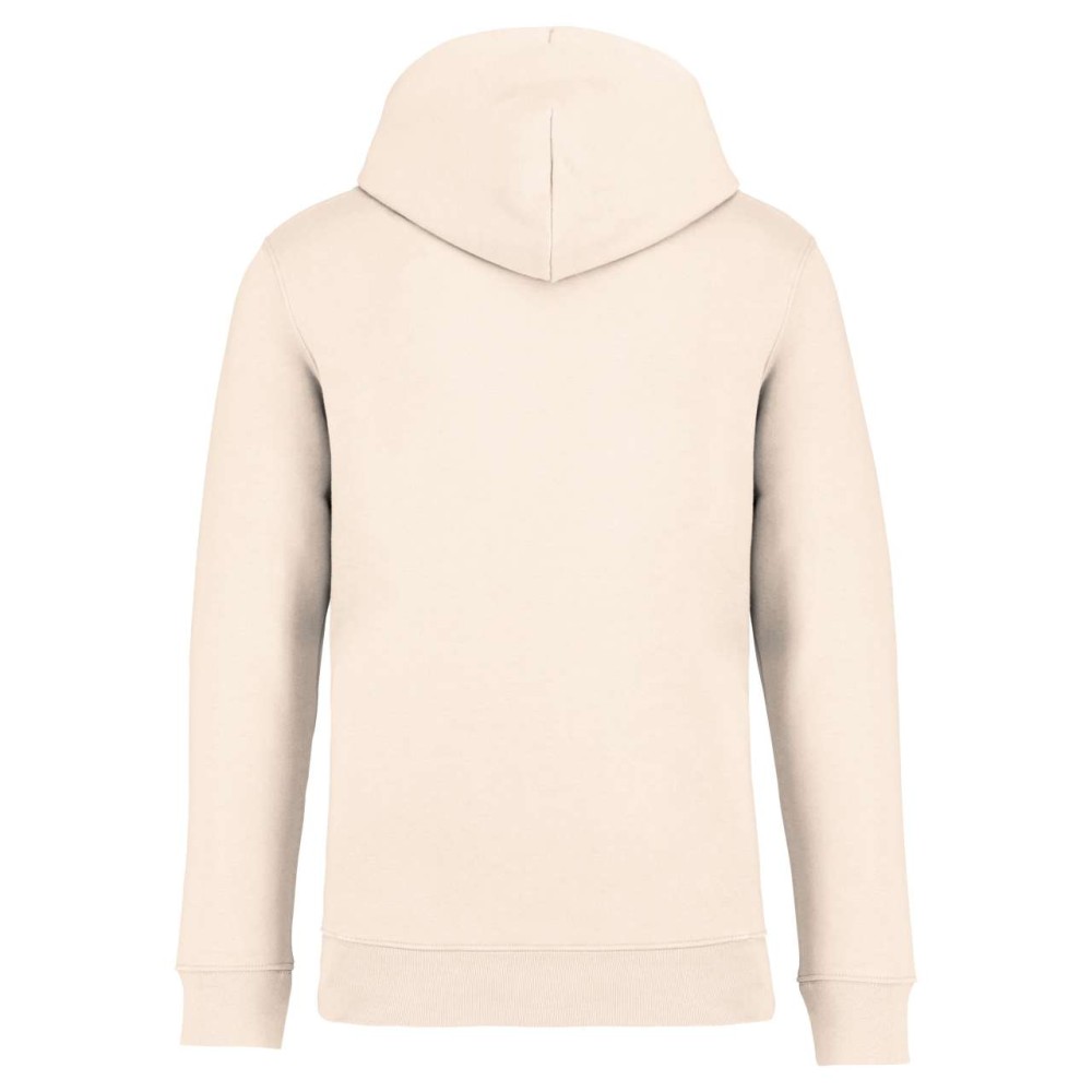 85 % bio, fésült pamutból és 15 % újrahasznosított poliészterből készült. Unisex. Egyenes szabás. Méretcímke organikus pamut és újrahasznosított poliészter logóval. LSF (Low Shrinkage Fleece: előzsugorított polár) kezelés. Kapucni. 1x1 bordás szegély és kézelő. Duplatűzés a kézelőn, a szegélyen és a nyaknál. Szalagozott nyakbelső hátul. Bélelt kapucni, a nyaknyíláson nincs felülvarrás, csak egy megkötés, hogy a húzózsinór a felső részen maradjon. Kerek húzózsinór a kapucnin fém véggel. Kenguru zseb. Nincs márkajelzés a nyakrészen, csak egy méretcímke a könnyű dekorálás érdekében. Karton függőcímkével érkezik, amely felsorolja a termék előállításához felhasznált környezetbarát anyagokat. Organikus pamutfonal. OEKO-TEX N CQ1007/7 STANDARD 100 tanúsítvánnyal rendelkezik. IFTH. 350 g/m2.