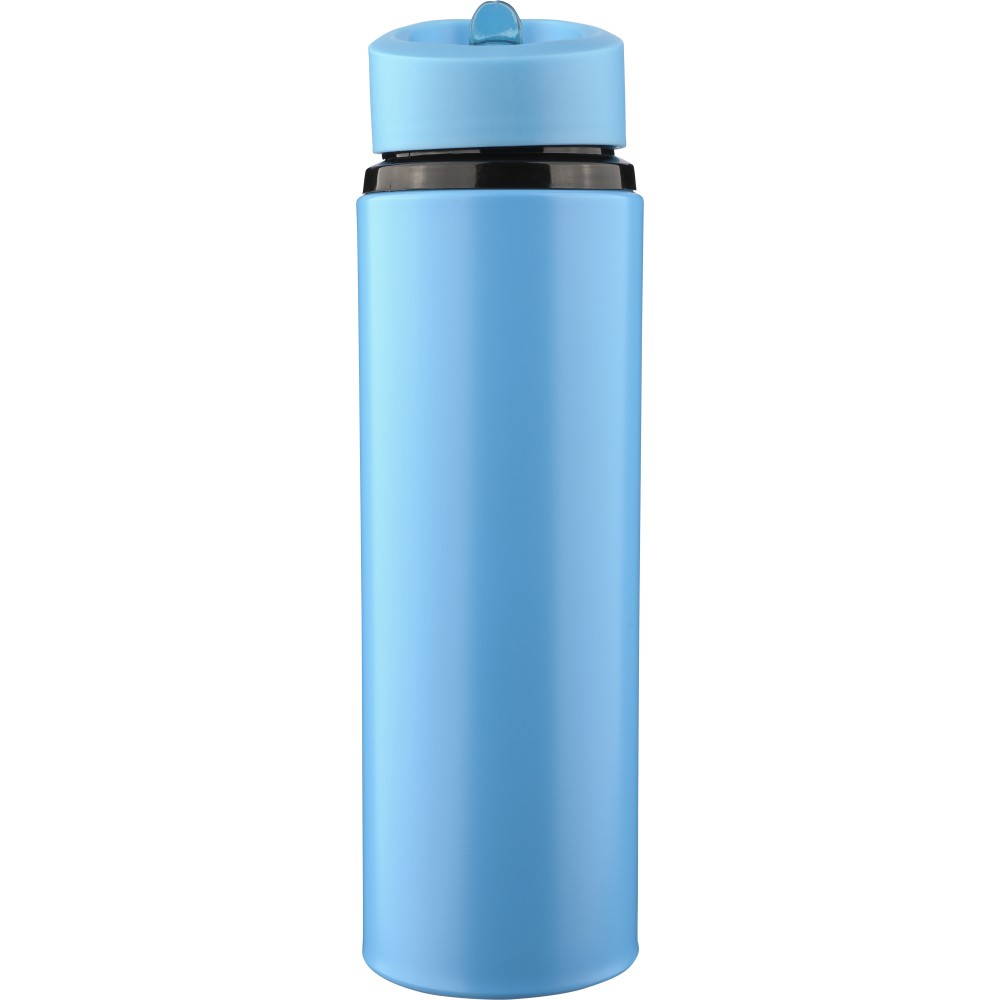 Újrahasznosított rozsdamentes acélból készült, egyfalú ivópalack rozsdamentes acél 304 anyagból, PP csavaros kupakkal, hordozófüllel, felhajtható ivószárral és belső szívószállal. Kizárólag hideg italokhoz használható, űrtartalma 500 ml. A palacktesten gravírozott recycled (újrahasznosított) alapanyagra utaló logó található. Darabonként barna kartondobozba csomagolva.